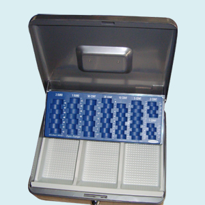 cash box: - packing:shrink - fine powder coating - lining: PS compartment - two nickel-plated copper keys - nickel-plated handle bar |